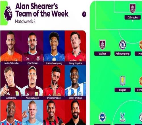 北京时间10月21日,英超官方晒出了阿兰-希勒评选的英超第8轮最佳阵容,其中哈兰德、B费、马奎尔、阿昌庞在列,教...