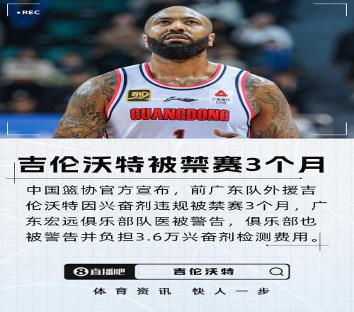 篮球协会正式宣布吉伦沃特因兴奋剂违规被禁赛三个月广东队需承担三万六千元的检测费用_cba直播免费观看直播